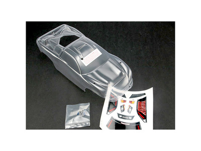 Nenafarbená lexanová karoséria Traxxas Nitro Rustler. Obsahom balenia je ďalej arch samolepiek.